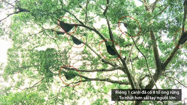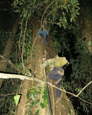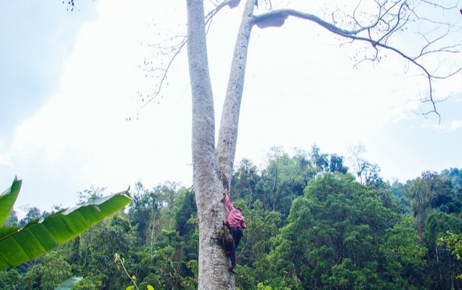 Bước 4: Ong đã bay đi hết, thợ lấy tổ trèo lên cây (thường cây trong rừng cao hơn 7m. Sau đó gỡ tổ và trèo xuống.