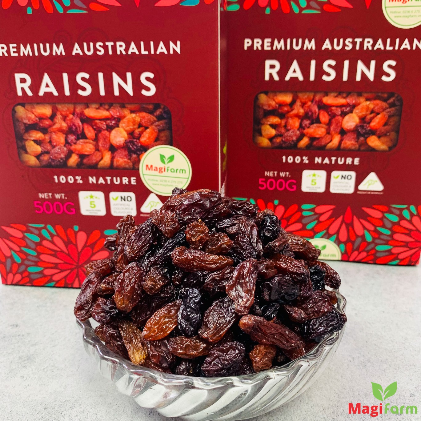 Đây là sản phẩm nho được phơi khô theo phương pháp tự nhiên thuộc giống Crimson của Úc. Nho chủ yếu được trồng ở các vùng Victoria, Nam Úc… bởi các trang trại trồng nho lớn nhất tại Úc, trong đó có trang trại Murray River Organic.